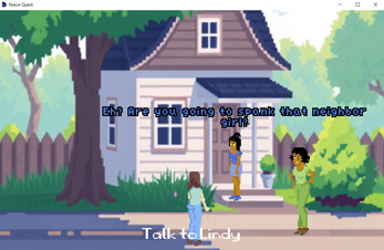 I can only talk to the aunt so far and I saw your change report so I think that's all you can do. I had to return the wine as the game made me when leaving through the front door, but I could no longer go out the window and can;t seem to get out the roof hatch after clicking any of the keys anywhere. I also got the apple from the backyard, but that appears to be the only thing you can do at the two new houses. I couldn't call my friends either so I'm not sure how to activate them. Given your one picture preview I must admit I'm curious to see the neighbours and I'm really looking forward to the mommy spankings (but they are 'moved elsewhere'.....to somewhere we can play now? I'm loving your game and hope this continues.